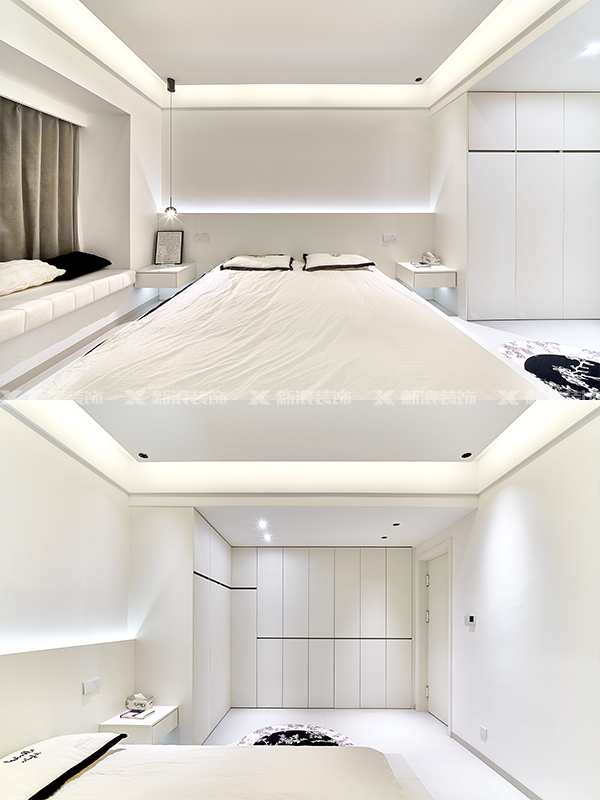 整體色調以現代黑白為主,搭配暖色燈帶和軟裝,溫馨滿滿。