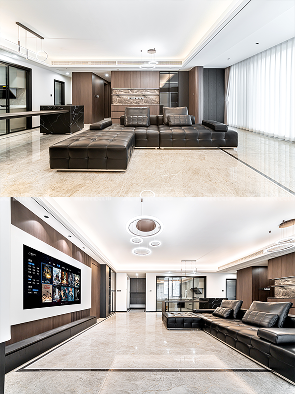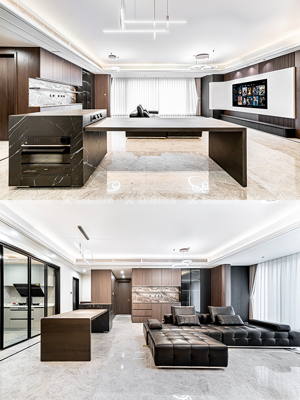 新浪裝飾,長沙裝修,一比一還原實景落地,高級感裝修,現代意式極簡,一門到頂設計,精裝房,二手房裝修,毛坯裝修,高級感客餐廳一體設計